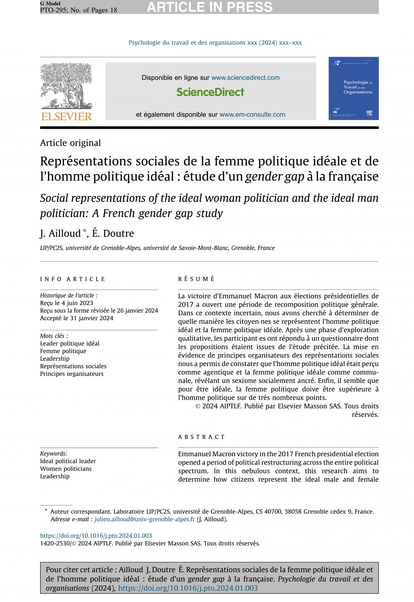 Représentations sociales de la femme politique idéale et de l’homme politique idéal : étude d’un gender gap à la française.