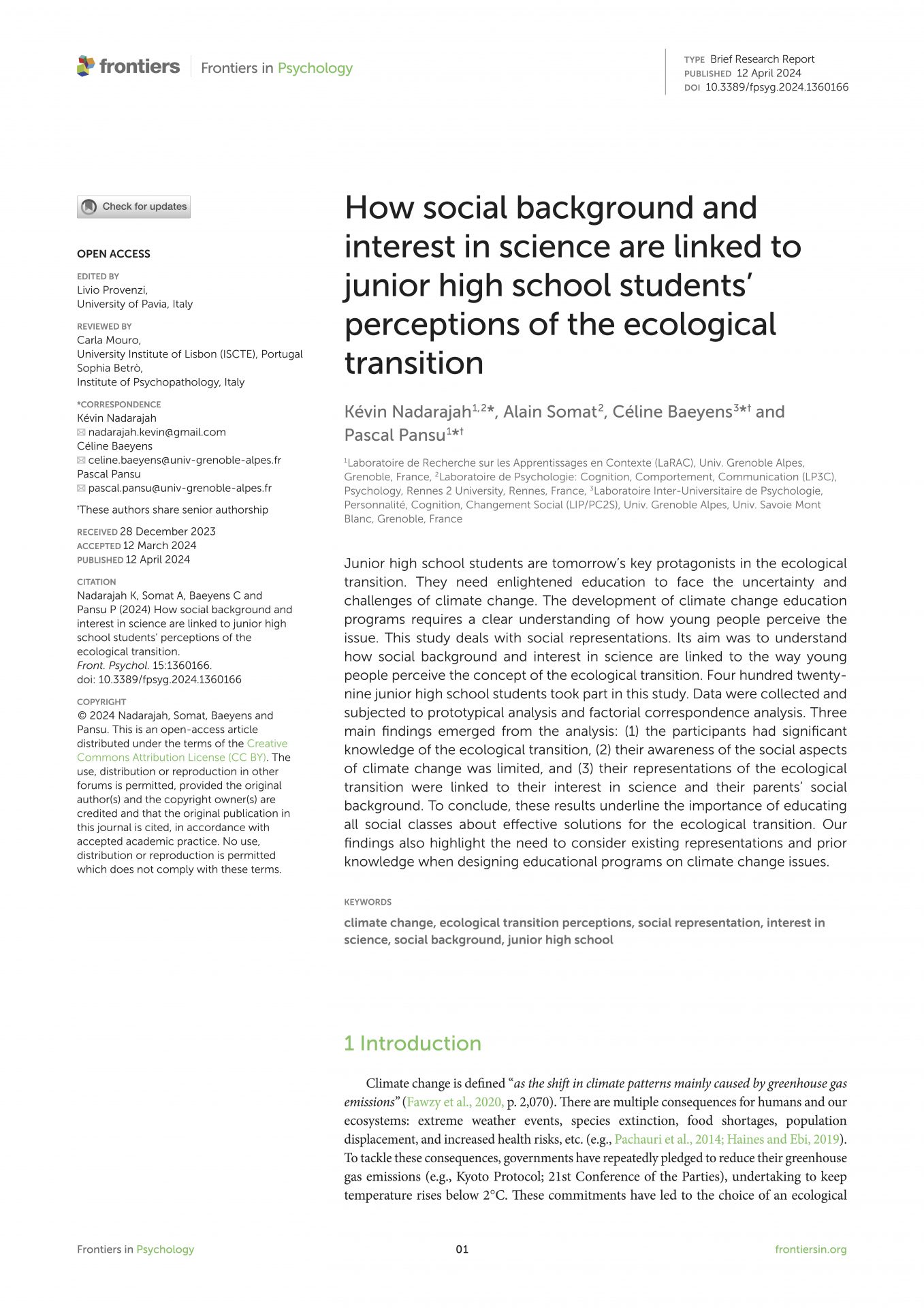 How social background and interest in science are linked to junior high school students’ perceptions of the ecological transition