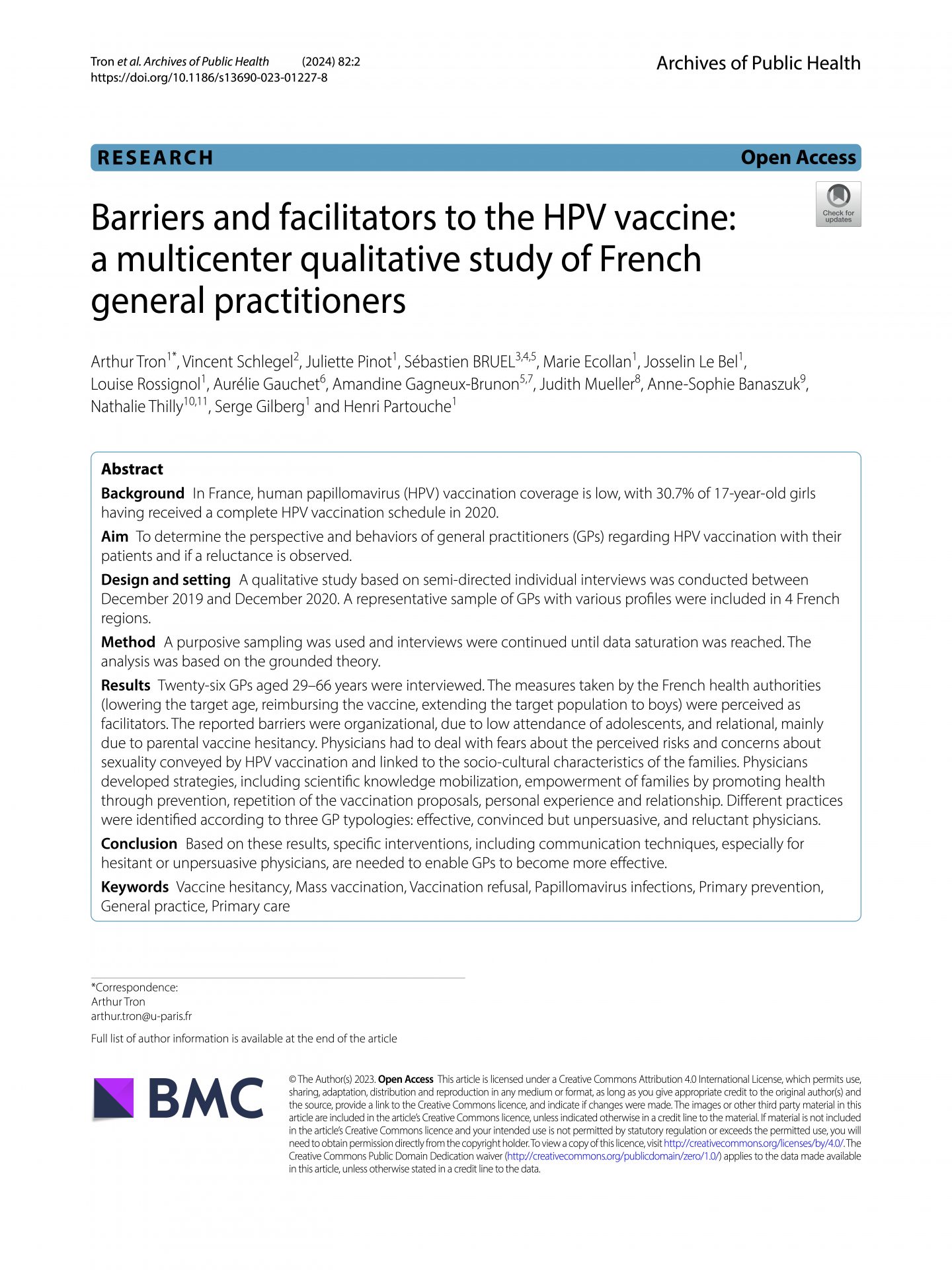 Barriers and facilitators to the HPV vaccine: a multicenter qualitative study of French general practitioners