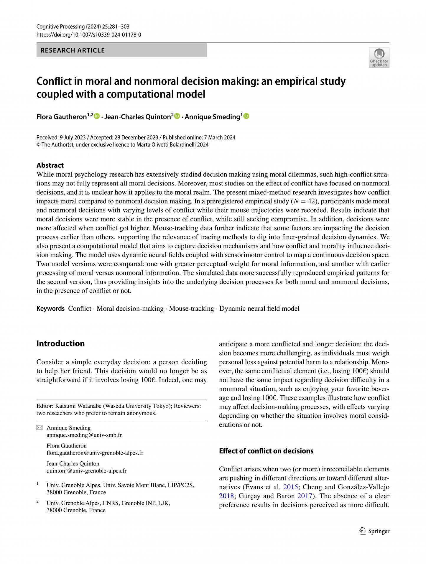 Conflict in moral and nonmoral decision making: an empirical study coupled with a computational model